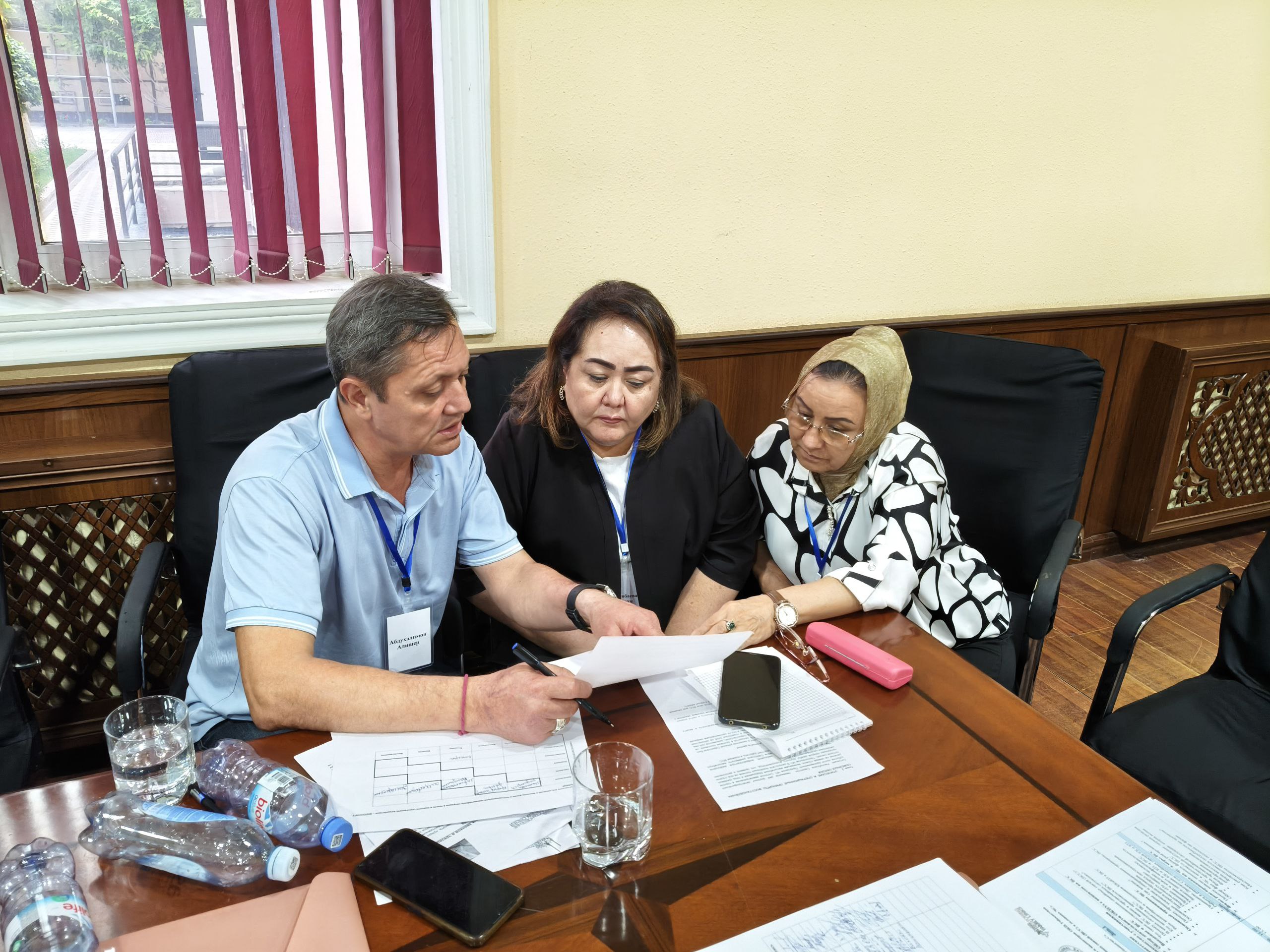 Участники отрабатывали навыки на примерах реальных ситуаций: сценарии землетрясения и крупного наводнения в Ферганской долине.